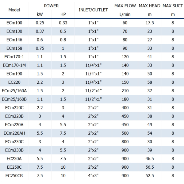 Κατάλληλη για τη μεταφορά νερού ή άλλων υγρών με ίδιες φυσικές και χημικές ιδιότητες με το νερό. Ως αποτέλεσμα της αξιοπιστίας τους και του γεγονότος ότι είναι εύχρηστα, οι αντλίες αυτές χρησιμοποιούνται ευρέως σε οικιακές και πολιτικές εφαρμογές όπως όπως η κατανομή του νερού σε συνδυασμό με τις μικρές και μεσαίου μεγέθους μονάδες πίεσης, για τη μεταφορά υγρών και για την άρδευση κήπων και εκτάσεων. Η αντλία πρέπει να εγκατασταθεί σε κλειστό περιβάλλον ή τουλάχιστον να προστατεύεται από δυσμενείς καιρικές συνθήκες.