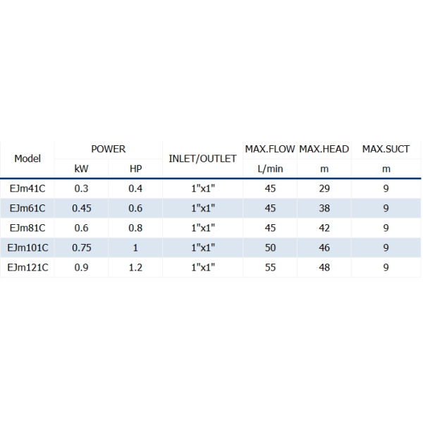 κατανάλωσης ενέργειας, οι αντλίες "EJm" αυτοαπορρόφησης συνιστώνται για χρήση σε