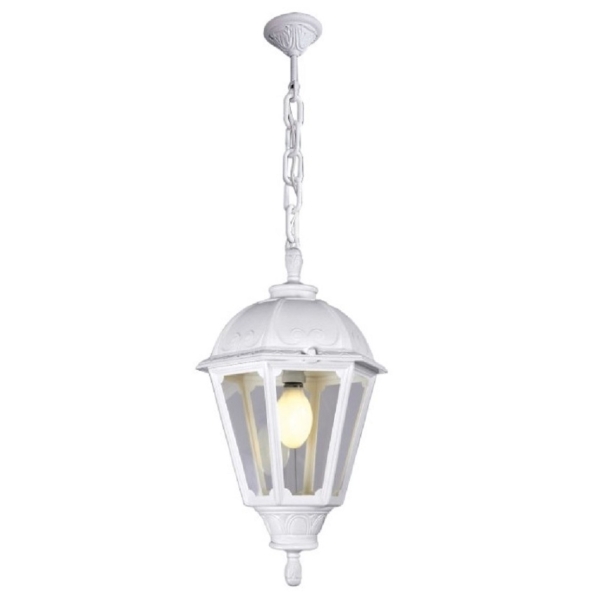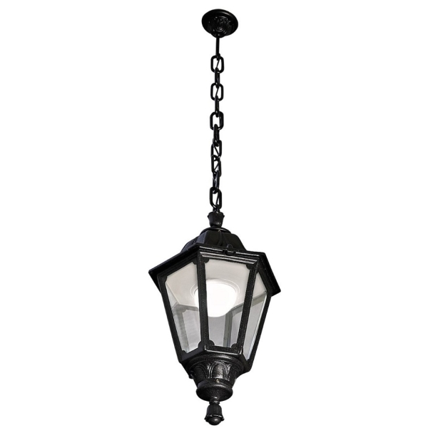 Εξαγωνικό φανάρι σε κλασικό στιλ με αλυσίδα 0,5 m Sichem. Φανάρι και αλυσίδα από υλικό ρητίνης από σοκ, σταθεροποιημένες ακτίνες UV, σκουριά και χωρίς διάβρωση. Διατίθεται σε E27 Filament ή E27 High Power. Η έκδοση E27 Filament διαθέτει ανθεκτική οροφή υψηλής θερμοκρασίας κατάλληλη για στερέωση πηνίου. Το εξάρτημα υψηλής ισχύος E27 είναι εξοπλισμένο με σύστημα LED μεγάλης διάρκειας, ισχυρό και αποδοτικό TUV και διατίθεται σε 2 διαφορετικές εκδόσεις ισχύος.