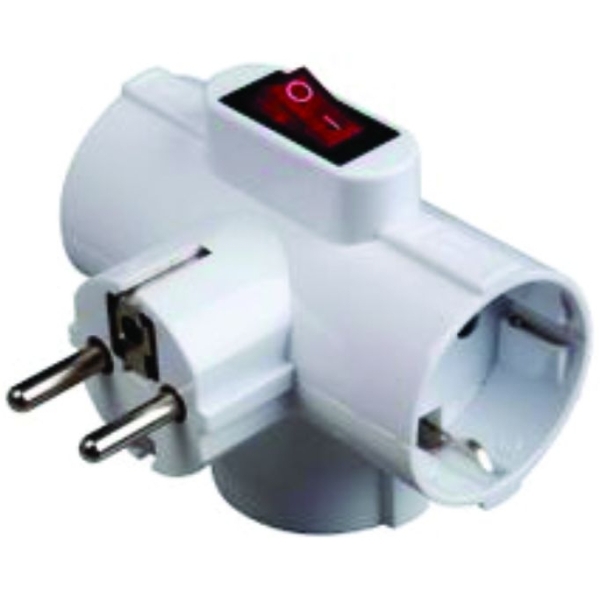 Αντάπτορας ρεύματος σούκο αρσενικό σε 3 θηλυκά σούκο με διακόπτη COM