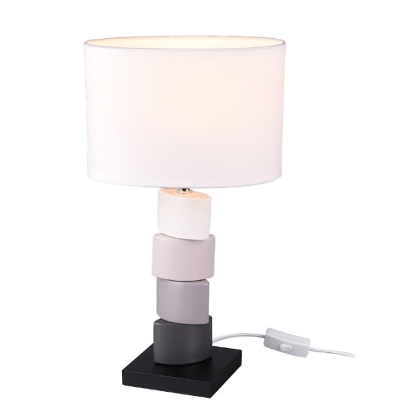 Τα φωτιστικά της συλλογής Kano της RL Lighting αποτελούνται από κεραμικό υλικό με τέσσερις αποχρώσεις του μαύρου και υφασμάτινο αμπαζούρ σε λευκό χρώμα.