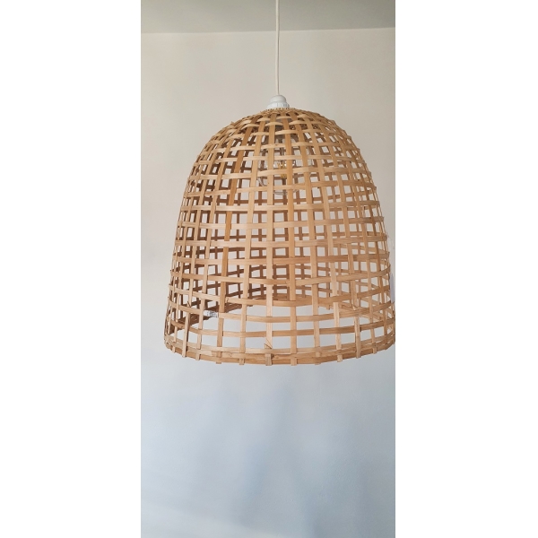 Boho στυλ διακόσμησης με το κρεμαστό φωτιστικό από πλεχτό μπαμπού σε ιδιαίτερο διάτρητο σχήμα. Είναι ιδανική επιλογή ξύλινου φωτιστικού για χώρους που θέλουμε ένα ξεχωριστό χαρακτήρα φωτισμού με γήινη διακόσμηση.